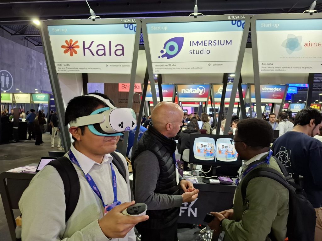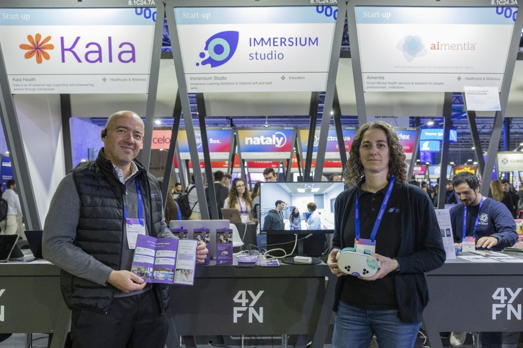 En Immersium Studio hemos tenido el placer de volver a participar en este evento en el 4YFN, el espacio dedicado a startups y emprendedores. Hemos tenido un stand en la zona de la Universitat Oberta de Catalunya, de la cual somos una spin-off desde 2018, junto con otras 16 startups como Accessibles, Aimentia Health Tech, All-Voiced, Authory, Kala Health Menopause, PANSSARI, Planeta Space Group, AlfaSAAC, Eduranti, Levelab Technologies, SeniorDomo, SmartSim Academy, Twintual i XR Xperiences.